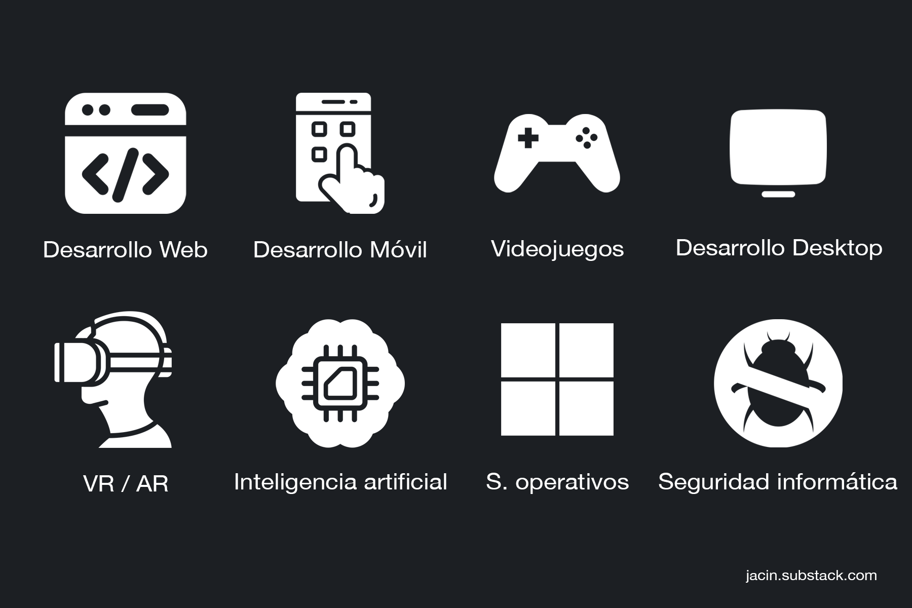 Si lo que buscas es un trabajo estable en una gran empresa entonces: Seguridad informática, Inteligencia artificial, Desarrollo web, Desarrollo móvil o Videojuegos.